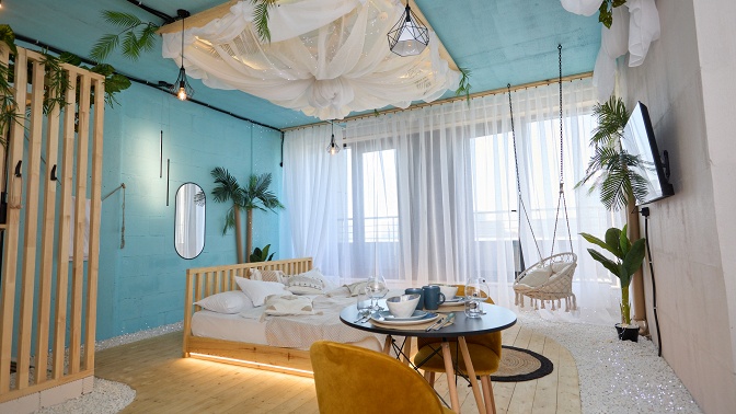 Апартаменты от компании «Мальдивы в Москве» отличаются тем, что здесь вы ощутите себя, словно на морском побережье. Полы с имитацией галечного пляжа, панорамные окна с морскими мотивами, декор из ракушек и морских камней — каждая деталь продумана до мелочей и создает атмосферу настоящего тропического курорта.