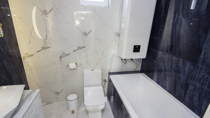 — ванная комната: ванна, тумба с раковиной, зеркало, унитаз, фен, комплект полотенец для 4 человек, халаты, тапочки, зубные наборы, жидкое мыло, шампунь, гель для душа;