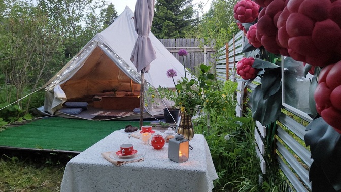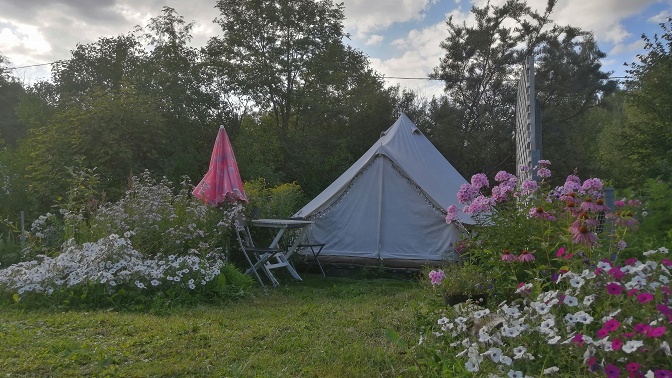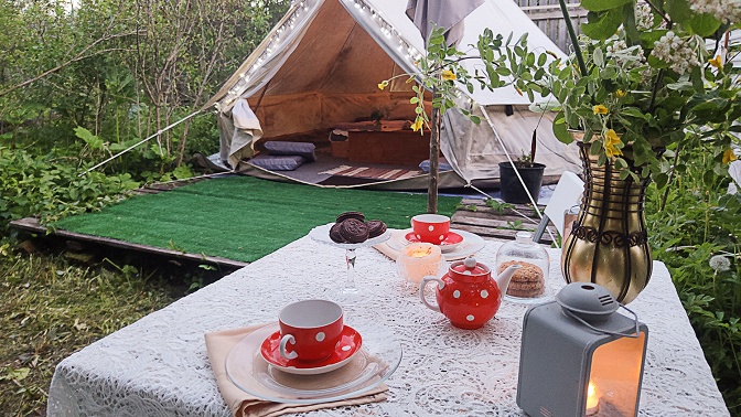 - Глэмпинг «Дача» — место, где оживают воспоминания о настоящем дачном отдыхе! Представьте себе: тенистые яблоневые сады, кусты, усыпанные спелыми ягодами, ароматный огород и буйство красок в цветниках...