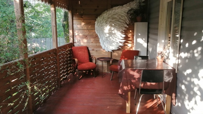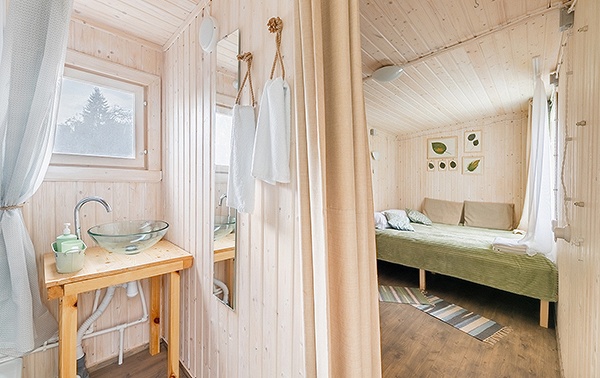 — уютный стильный домик с огромной двуспальной кроватью и всеми удобствами;