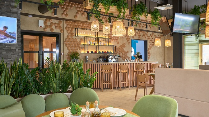 В инфраструктуру отеля входят ресторан с одноименным названием, бар, конференц-зал «Галактика», SPA-центр с парными, бассейном и джакузи, плавучая русская дровяная баня, свадебная площадка, сад, беседки с мангальными зонами, детская игровая комната, детские площадки с качелями, тюбинговая горка, канатная дорога, футбольное поле, павильон со столами для игры в настольный теннис, автомобильная парковка. На пирсе осенью установлены спортивные тренажеры, индивидуальные боксы для отдыха и швартовка катеров.