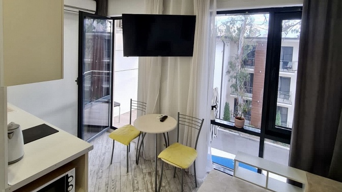 Здесь все располагает к комфортному отдыху. Апартаменты подойдут как для короткого отпуска, так и для более длительного проживания. «Южный вайб» — это удачное сочетание курортного настроения и городского комфорта.