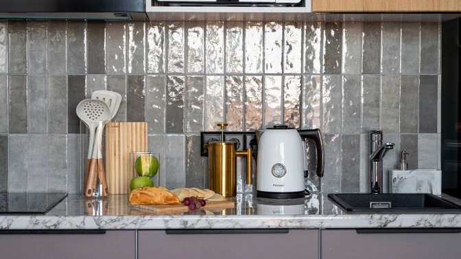 - Вас ждут апартаменты в современном стиле, где есть все необходимое для комфортабельного проживания! В вашем распоряжении будет полностью оборудованная кухня, современная ванная комната, все удобства и Wi-Fi. На территории рядом с домом есть парковка и спортивная площадка.