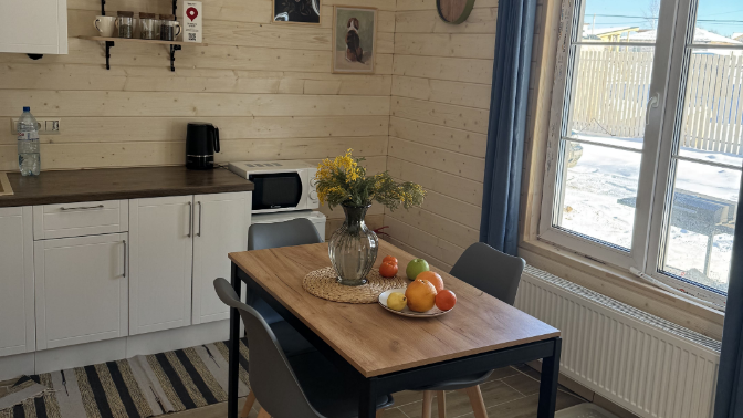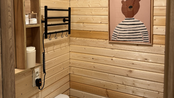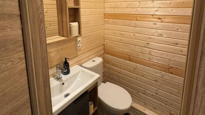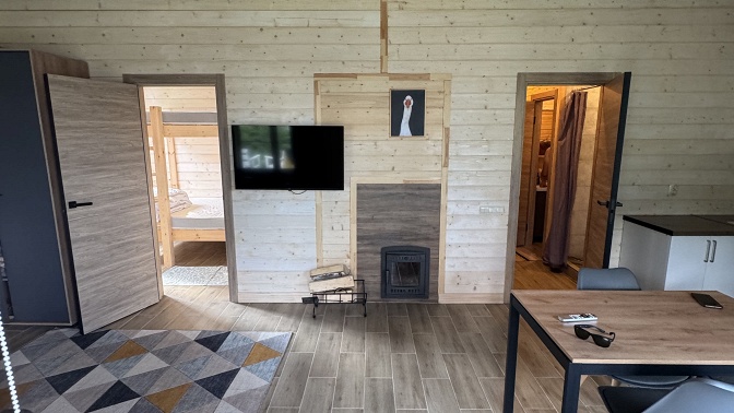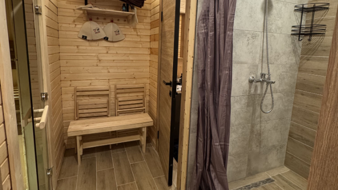 Что здесь есть? Закрытая частная территория, парковка, мангальная зона, просторная терраса с видом на лес. В доме есть отдельная спальня с 2-ярусной кроватью и двумя спальными местами на диване в гостиной. Кухня полностью оборудована всем необходимым для комфортного проживания. А баня внутри дома создает атмосферу уюта.