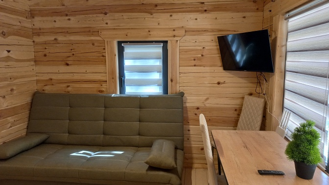 — удобная двуспальная кровать с ортопедическим матрасом и двуспальный диван-кровать.