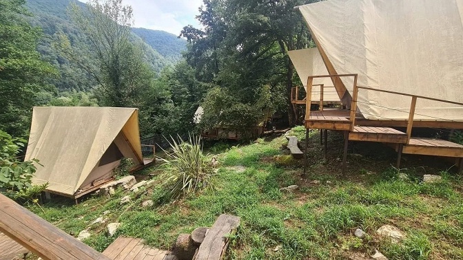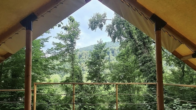 — гостевой дом находится в живописном месте, вокруг горы и лес, рядом с горной рекой;