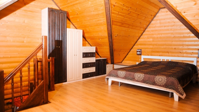 — на втором этаже — двуспальная кровать и кресло-кровать;