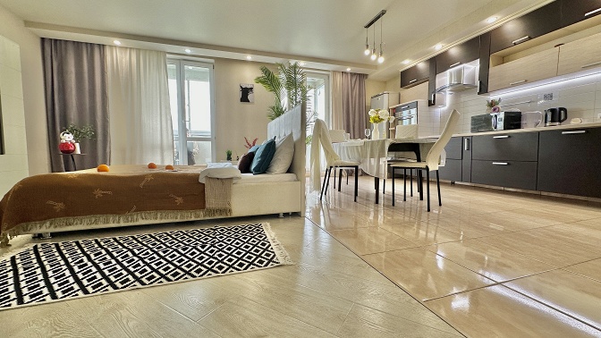 — Скидка 30% на аренду в течение 3 дней/2 ночей (2 суток) дизайнерской 2-комнатной квартиры с современным ремонтом и интересными элементами декора для 4 человек (7700 руб. вместо 11 000 руб.)