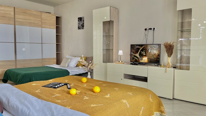— Скидка 30% на аренду в течение 4 дней/3 ночей (3 суток) дизайнерской 2-комнатной квартиры с современным ремонтом и интересными элементами декора для 5 человек (12 600 руб. вместо 18 000 руб.)