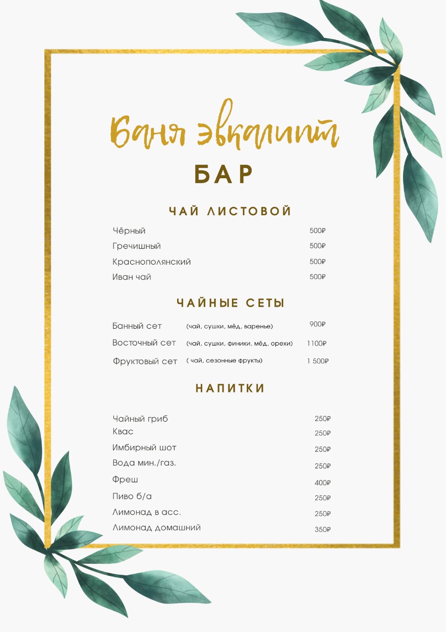 — на территории SPA-комплекса можно заказать напитки (посмотреть барную карту);