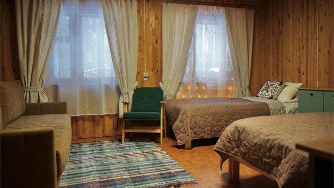 — Скидка 35% на проживание в течение 2 дней/1 ночи для компании до 2 человек в домике «Солнечный берег» в будние дни (вс-чт) с баней и чаном (6955 руб. вместо 10 700 руб.)