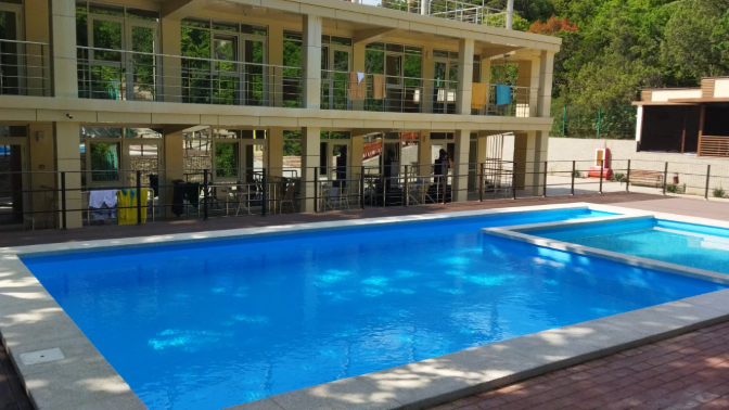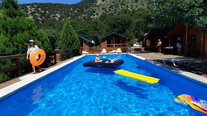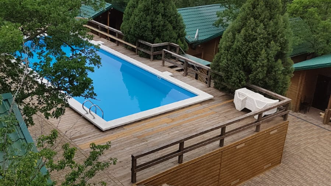 — пользование бассейном (один бассейн для проживающих в номерах, второй для проживающих в домиках);