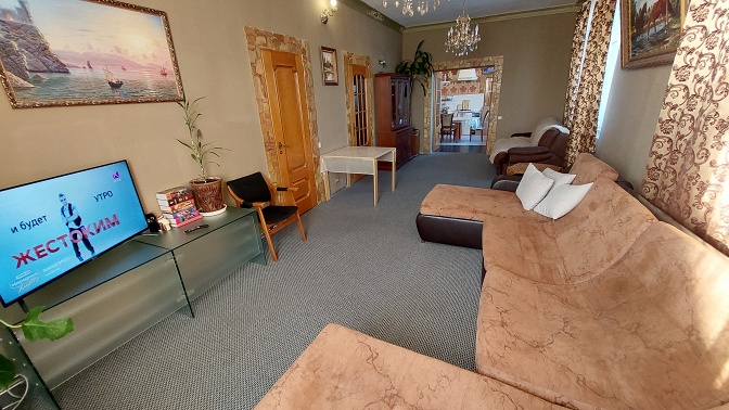 — караоке, Wi-Fi, LСD-телевизоры со Smart TV в каждой комнате, в гостиной и на кухне;