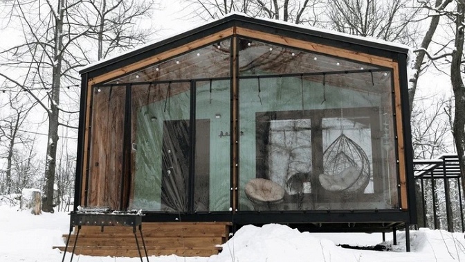— санитарная зона-душ, раковина, унитаз, средства гигиены и тапочки, фен (модуль вынесен в 2 м от дома);
