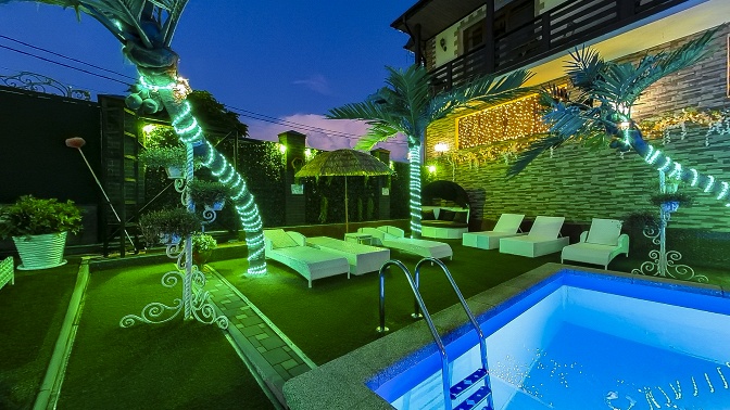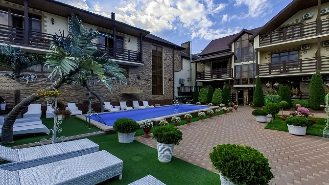 На охраняемой территории есть пространство для проведения вечернего досуга, оборудованное столами и стульями, цветник, где можно провести приятный вечер в кругу семьи, бассейн под открытым небом, зона для загара с шезлонгами, место для курения, кафе-столовая с домашней кухней, автомобильная парковка, доступ к Wi-Fi, прачечная. - https://www.hotel-anapa.com/edem-s-hotel-jemete