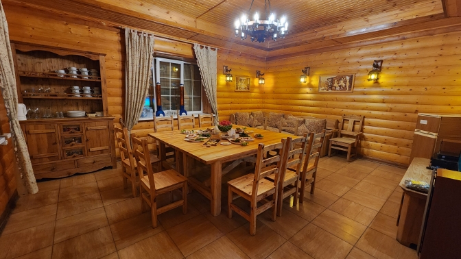 Питание по системе «шведский стол» организовано в ресторанном комплексе. В домашней атмосфере гости смогут пообедать традиционными блюдами русской и европейской кухонь.