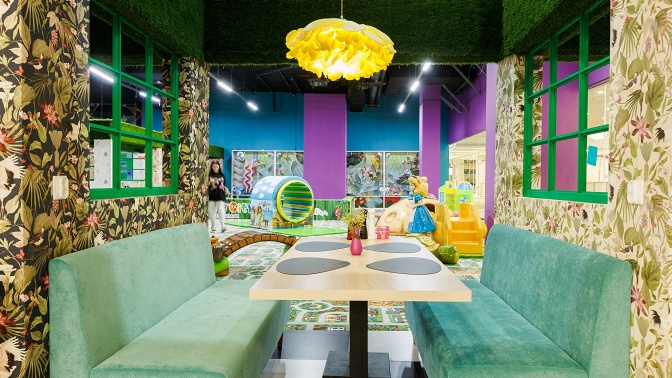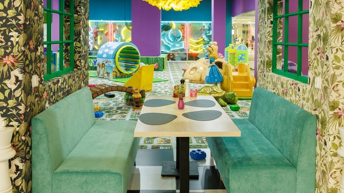 Пока дети бегают, прыгают и покоряют новые вершины под присмотром инструкторов, взрослые могут насладиться спокойным общением, интересными блюдами и напитками. В меню ресторана включены блюда интернациональной кухни, популярные в разных уголках мира. Для маленьких посетителей разработано игровое детское меню. Среди хитов — мини-пицца на цветном тесте, сырники с ягодным муссом и, конечно же, молочные коктейли. Все блюда готовятся из свежих и натуральных продуктов без консервантов и добавок.