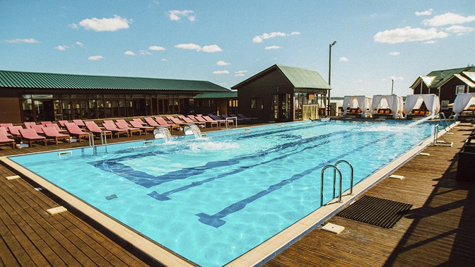 Летом тут функционирует полноценный пляжный комплекс с солнечной террасой, газоном для отдыха с шезлонгами и зонтами, баром с напитками и едой. Зимой SPA-центр превращается в горячие источники с артезианской водой.