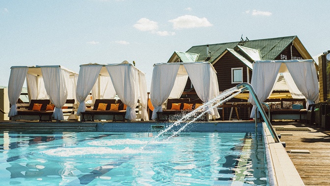 — летом SPA-центр — это полноценный пляжный комплекс (солнечная терраса и газон для отдыха с шезлонгами и зонтами, бар с напитками и едой);