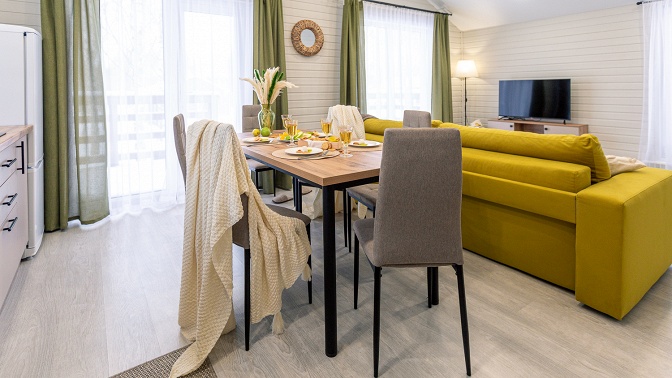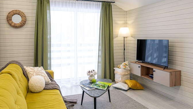 Дом площадью 65 кв. м. спроектирован для комфортного семейного проживания. Здесь есть все необходимое, включая бытовую технику, посуду, полотенца и гигиенические принадлежности.