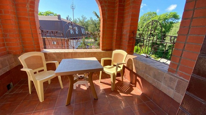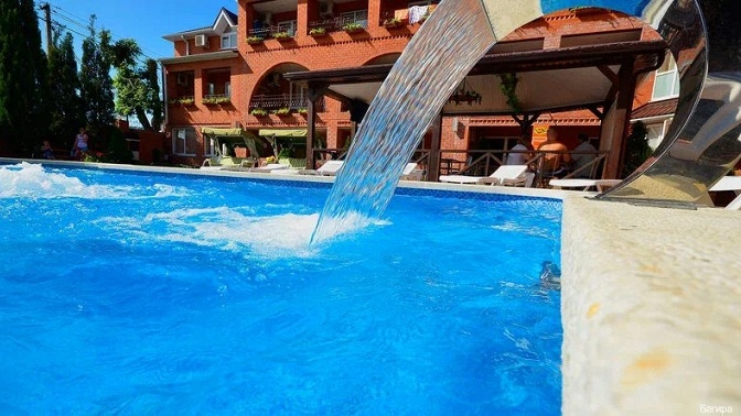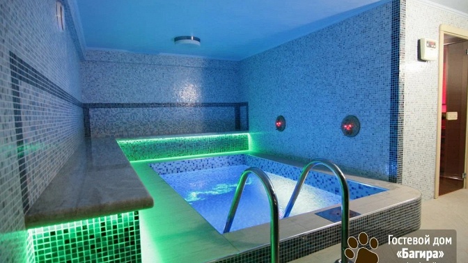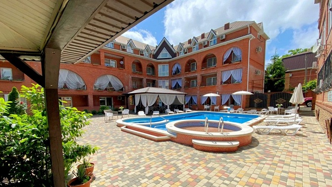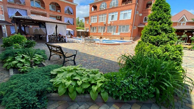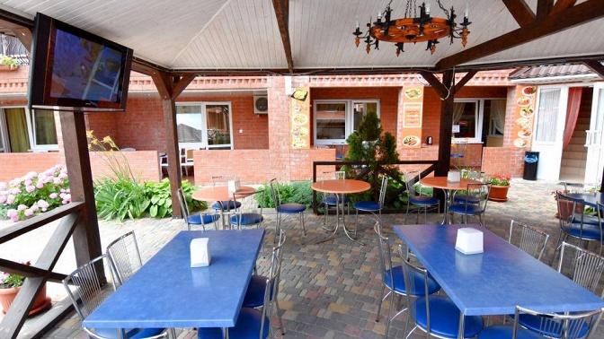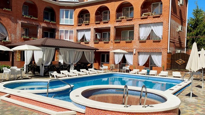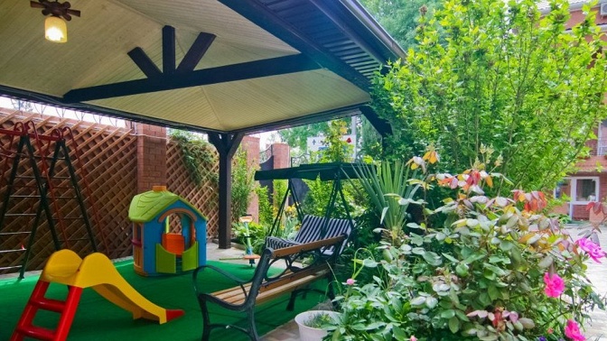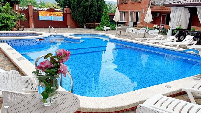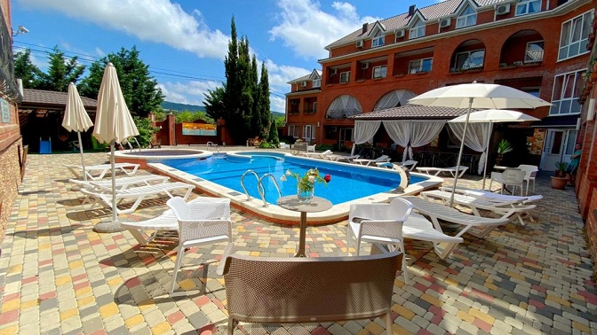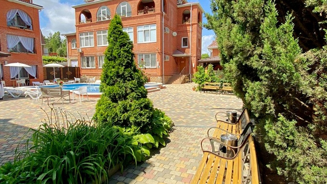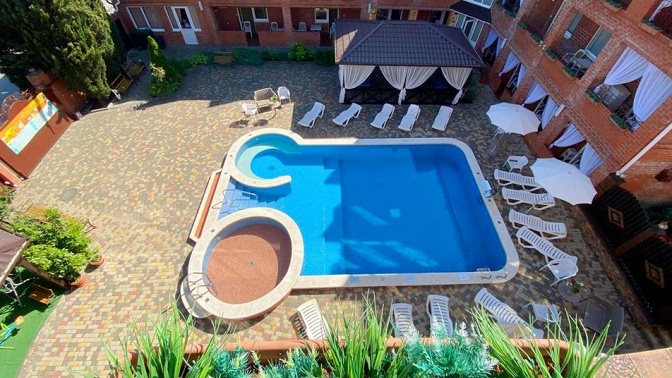 — гостевой дом — современный отель, облагороженная территория, бассейн, детская площадка, кафе-столовая, мангал-бар, банный комплекс (финская сауна, турецкий хаммам);