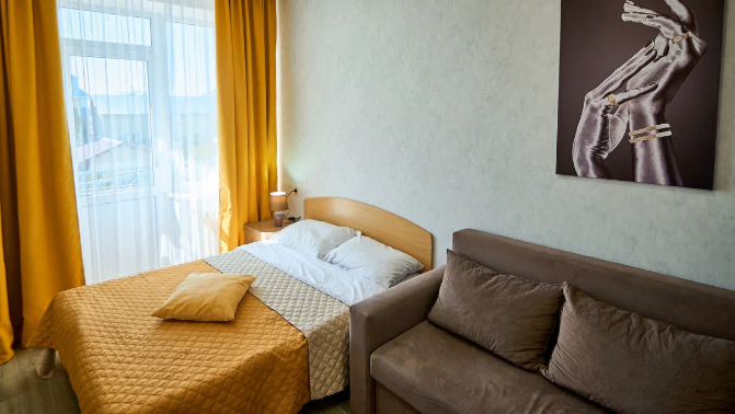 Проживание в сентябре для четверых в номере категории двухместный с двуспальной кроватью и 2 дополнительными местами (раскладной диван) без балкона: