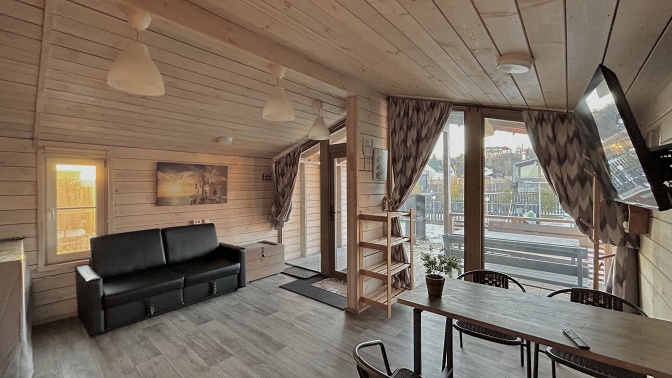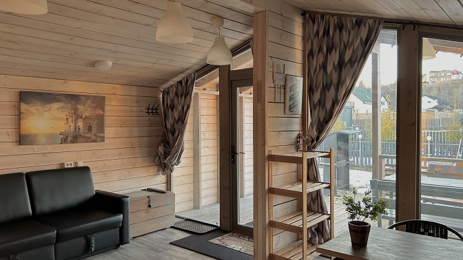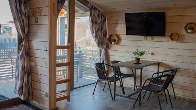 Просторные коттеджи оснащены всем необходимым для комфортного проживания: есть кухня, уютная гостиная, терраса. Также на территории обустроены мангальные зоны и есть банный комплекс.