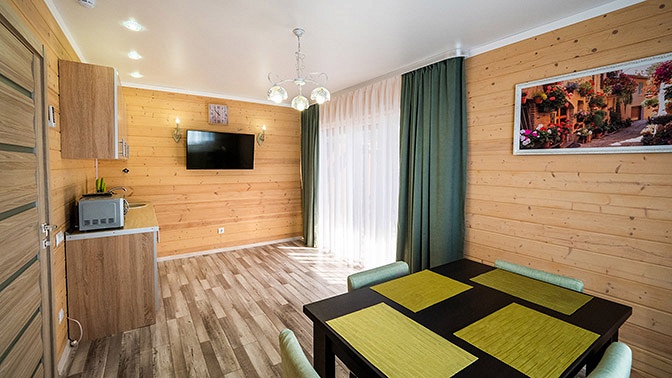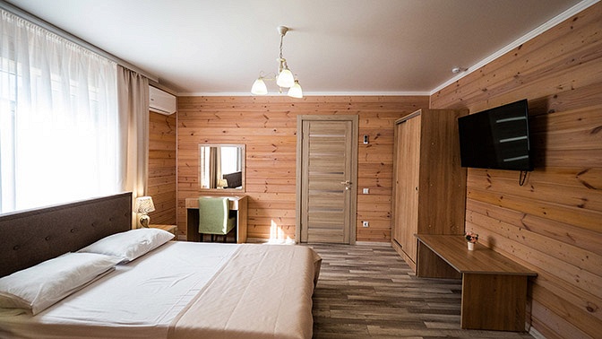Отдых в 3-местном (2+1) номере категории евростандарт студия (деревянный коттедж) с 3-разовым питанием для троих в период 15.09.2025 по 02.10.2025:
