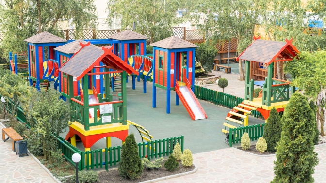 — детский бассейн с подогревом (размер — 10×10 м, глубина — 0,6 м);