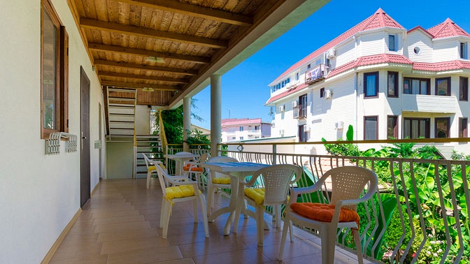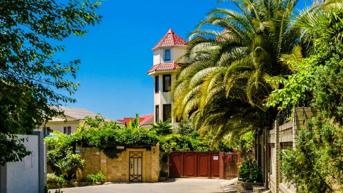 На облагороженной территории гостевого дома растет более 200 видов экзотических растений (мушмула, инжир, фейхоа, хурма, маракуйя, киви), есть также удобная беседка напротив пруда с рыбками и небольшой водопад.