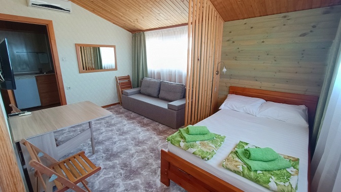 — Скидка 30% на отдых для компании до 5 человек в течение 3 дней 2 ночей в номере категории студия с мини-кухней (до 15.10.2025) (6440 руб. вместо 9200 руб.)