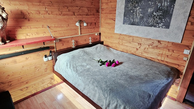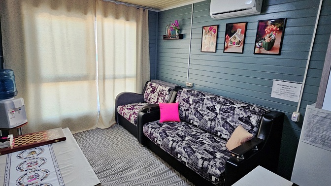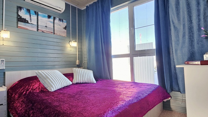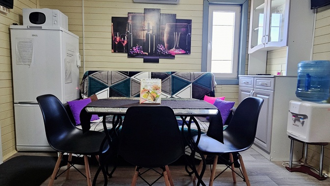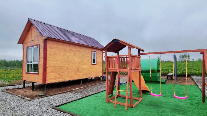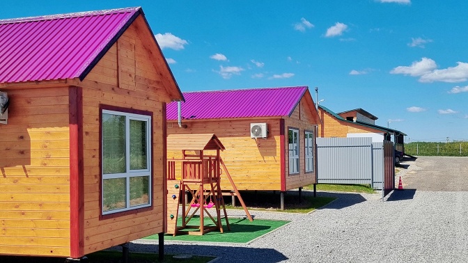В домиках с панорамными окнами есть все необходимое для полноценного отдыха. Предусмотрены кондиционеры, холодильники, телевизоры, кулеры, постельное белье, полотенца, посуда и многое другое. Настольные игры помогут разнообразить отдых. Детям наверняка понравится игровая площадка.