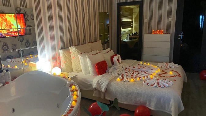 Аренда номера с романтическим украшением в течение 3 часов в дневное время (с 11:00 до 14:00):