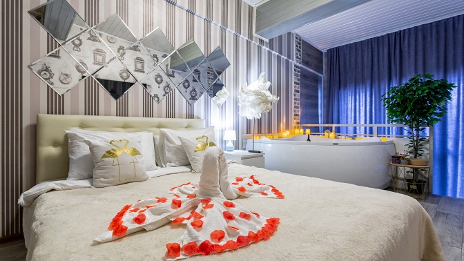 Аренда номера с романтическим украшением в течение 4 часов в вечернее и ночное время (с 14:00 до 10:00):