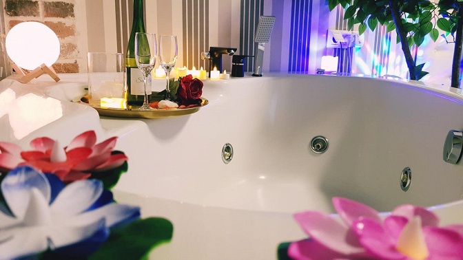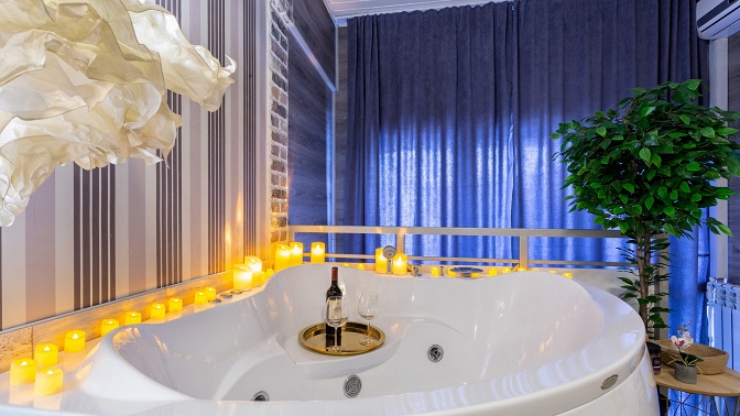 — Скидка 30% на аренду с романтическим украшением для двоих номера категории SPA-люкс с сауной и джакузи в течение 3 часов в дневное время (с 11:00 до 14:00) (6300 руб. вместо 9000 руб.)