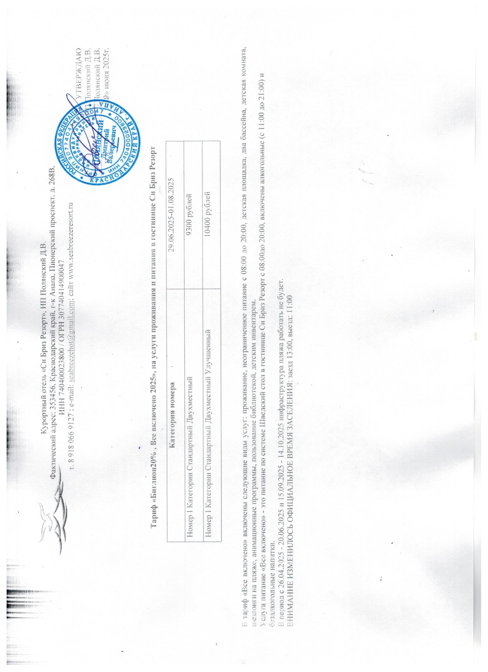 — Скидка 30% на отдых по системе «всё включено» для двоих в течение 4 дней/3 ночей в номере категории стандартный двухместный улучшенный (заезды в период с 29.06.2025 по 01.08.2025) (21 840 руб. вместо 31 200 руб.)