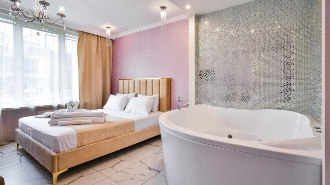 — Скидка 30% на романтический отдых для двоих в течение 3 часов в номере категории премиум с джакузи («Жемчужина») (3430 руб. вместо 4900 руб.)