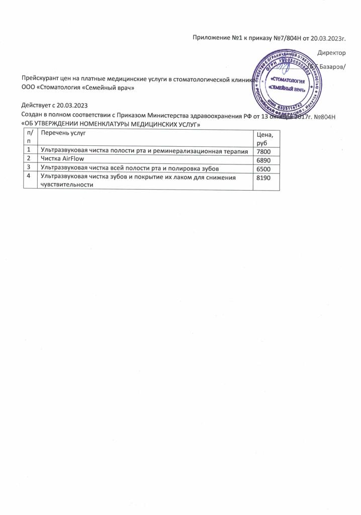 — ультразвуковая чистка зубов (снятие зубного камня и налета);