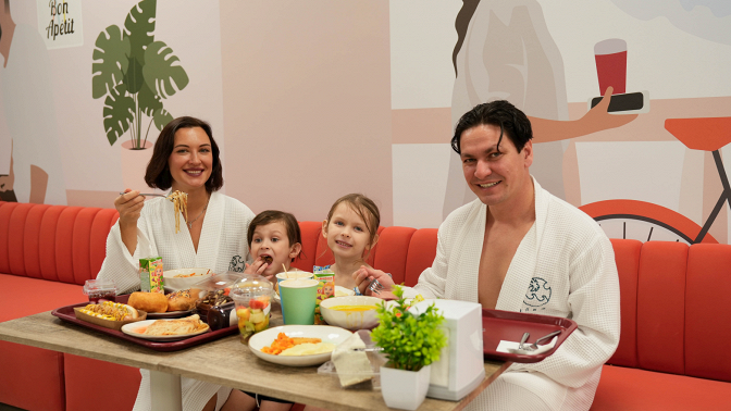 Комплекс занимает два уровня и впечатляет масштабом — более 12 600 квадратных метров продуманного комфорта. В распоряжении гостей разнообразные бани, сауны и хаммамы. Несколько бассейнов позволяют выбрать отдых по настроению: от спокойного погружения до активного водного релакса. Любителей комплексного ухода за собой ждет SPA-пространство с процедурами для лица и тела, персональными парениями, а также зонами для практик, восстановления и глубокой релаксации. Инфраструктура комплекса продумана до мелочей: ресторан с разнообразным меню, уютная кофейня и фитобар, детская игровая комната.