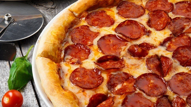 — пицца «Пиканто» (тесто, соус «Пиццайоло», сыр моцарелла, сервелат, помидоры, маринованные огурцы, красный лук) (из расчета 1 пицца для 2 человек) — 500 г;