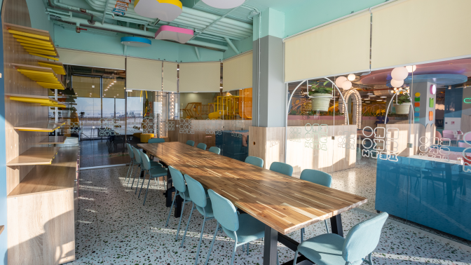 Комната оснащена всем необходимым и для подвижных, и для спокойных игр. Конструкторы, лабиринт, сухой бассейн — дети могут придумывать свои собственные игровые сценарии и создавать для них своего рода декорации в компании аниматоров. Ну и, разумеется, во время пребывания на игровой площадке развиваются коммуникативные навыки малыша, ведь он учится общаться со сверстниками!