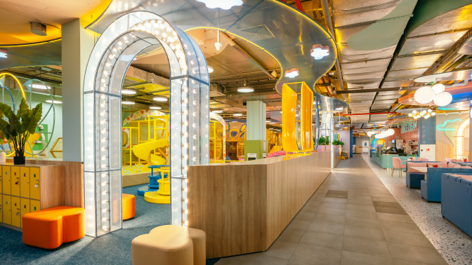 Теперь, пока мама и папа гуляют по супермаркету или смотрят кино в кинотеатре, ребенок может весело провести время на игровой площадке.