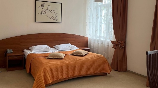 Из окон номеров видно море или сосновый лес. Номер категории полулюкс площадью 35 кв. м включает в себя спальню и гостиную. Площадь номера категории стандарт составляет 15 кв. м, категории стандарт плюс — 25 кв. м. В каждом из них есть телевизор.