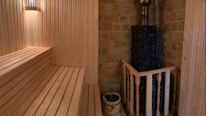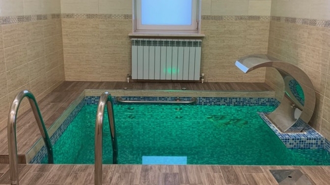 — аренда банного комплекса: русская баня на дровах, бассейн с гидромассажем, обливное ведро-водопад — 2500 руб./час;