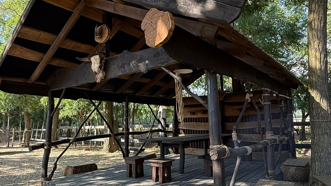 Беседка рассчитана на компанию до 15 человек. Здесь есть зона отдыха, мангал, качели. Также можно будет посетить зоопарк при экоферме.