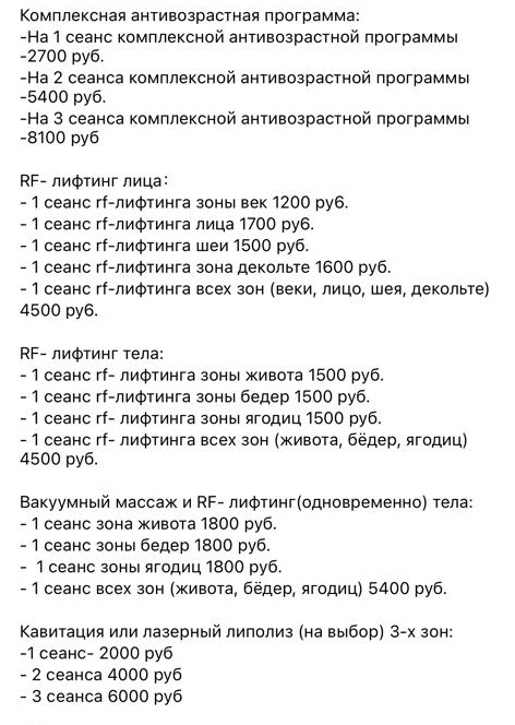 — Скидка 50% на 1 сеанс RF-лифтинга тела (750 руб. вместо 1500 руб.)