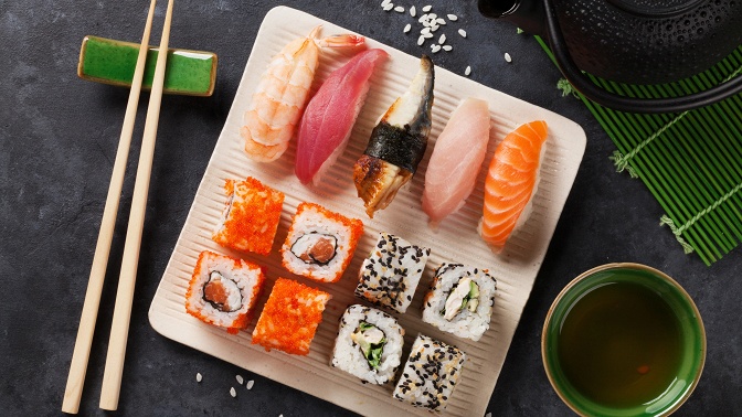 Подают суши и роллы традиционно с соевым соусом, маринованным имбирем и жгучим васаби. Такое сочетание вкусов удачно подчеркивает выразительность этих маленьких шедевров японской кухни. Попробуйте и убедитесь сами!