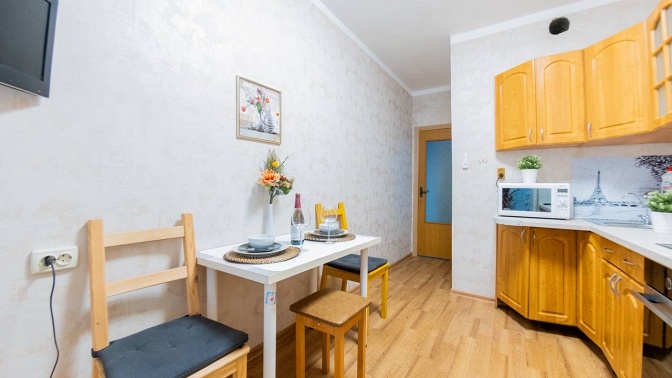 Квартира находится на Бескудниковском бульваре, в 10 минутах от метро «Яхромская». Здесь есть вся необходимая бытовая техника, посуда, кухонные и гигиенические принадлежности. Также работает Wi-Fi.