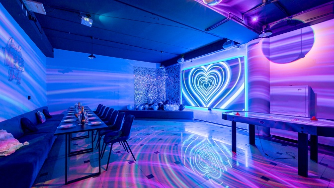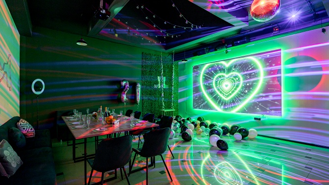 Неоновые вывески, светодиодные кольцевые лампы, экран для просмотра фильмов, объемный профессиональный звук, караоке-центр и большое пространство для танцев — все это позволяет сделать любое мероприятие незабываемым.