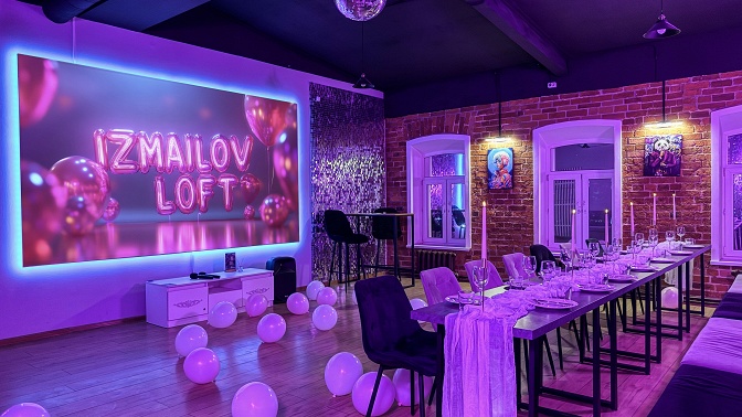 - Аренда лофта Izmailov Loft — ваш ключ к незабываемому событию! Здесь продумана каждая деталь, чтобы ваше мероприятие прошло великолепно. От стильных фотозон до профессионального звука — в Izmailov Loft есть все что нужно для яркого и запоминающегося праздника.